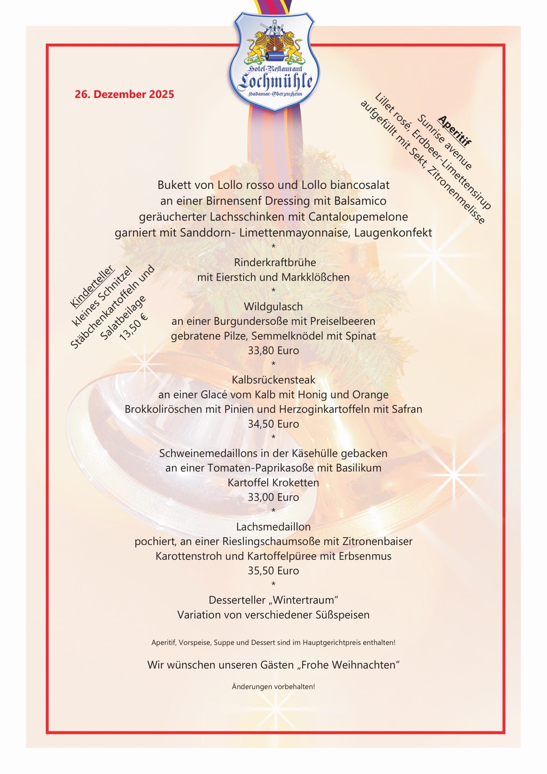 Montag – Donnerstag ist das Restaurant geschlossen!